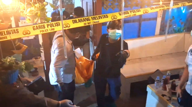 Petugas dari Inafis Satreskrim Polres Subang bersama Kapolsek Patokbeusi saat mengeluarkan mayat korban dari dalam warung Karaoke di pinggir jalan…