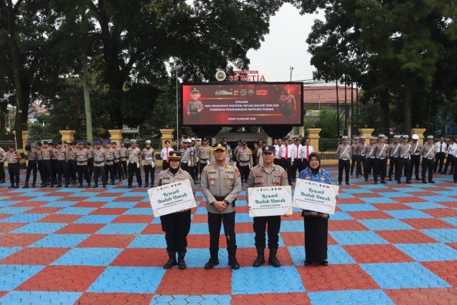 Ketiga anggota yang menerima a rewards Umroh masing-masing Aiptu Hadi Iskandar, Kalsium Polsek Subang Kota, Ipda Tantan Baeduri, Kanit Bin Tibsos Satbinmas Polres Subang dan Penata Tk.I sebagai Kasubag Watpers Bag SDM Polres Subang, Siti Fitratin Korni, S. Sos