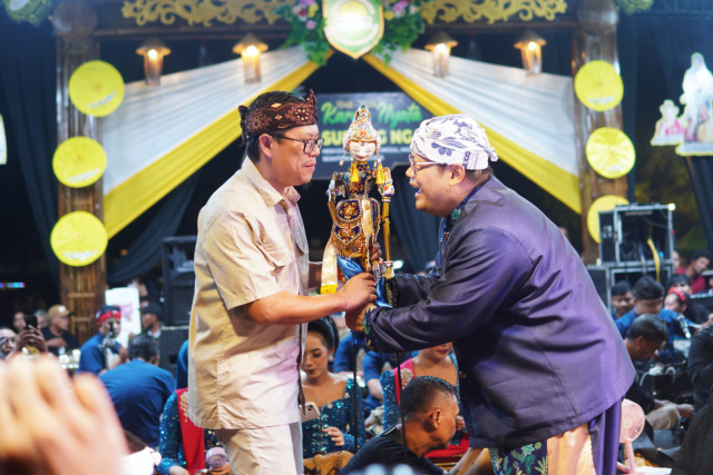 Usai sambutan, Kang Akur menerima cinderamata berupa wayang tokoh ‘Arjuna’ dari Ki Dadan Sunandar Sunarya. Ia berharap semangat yang diangkat dalam peringatan Hari Jadi ke-78 Kabupaten Subang dapat terus diwujudkan melalui karya nyata pembangunan.