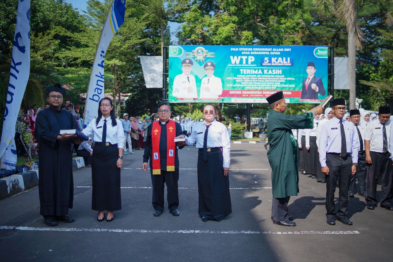 Usai menerima laporan kenaikan pangkat, Panglima TNI Agus Subiyanto memberikan ucapan selamat kepada para Perwira tinggi (Pati) TNI yang naik pangkat diikuti oleh para Pati TNI lainnya.