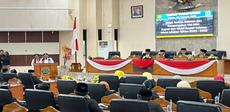 Galagala.Id, Subang,- Bupati Subang Reynaldi Putra Andita BR, S.IP., dan Agus Masykur Rosyadi, S.SI., M.M., menghadiri Rapat Paripurna DPRD Kabupaten Subang terkait serah terima jabatan dan penyampaian visi misi Bupati 2025-2030, Kamis (20/2/2025)