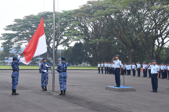 Galagala Id, Bandung,-Upacara bendera mingguan di lapangan upacara Komando Pemeliharaan Materiil TNI AU (Koharmatau) dipimpin oleh Koor Parik It Koharmatau,7 Kolonel Tek Sentot Pudjagiri. Senin (5/6/2023). Turut hadir dalam kegiatan tersebut para pejabat Koharmatau.