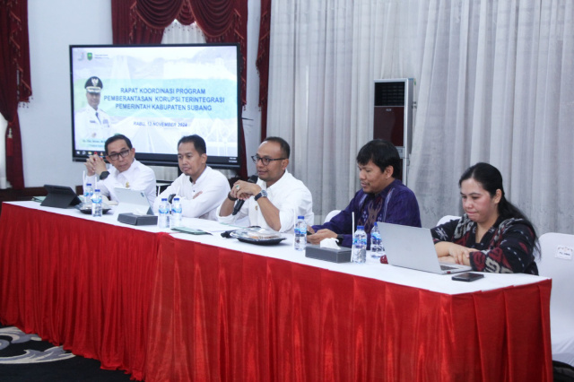 Galagala.Id,Subang,- Rapat Koordinasi (Ra) Program Pemberantasan Korupsi Terintegrasi Pemerintah Daerah Kabupaten Subang 2024 yang berlangsung di Pendopo Rumah Dinas Bupati Subang, Rabu (13/11/2024). Tampak dihadiri oleh anggota KPK-RI, Kasatgas Korsup Wilayah II, Arief Nurcahyo.