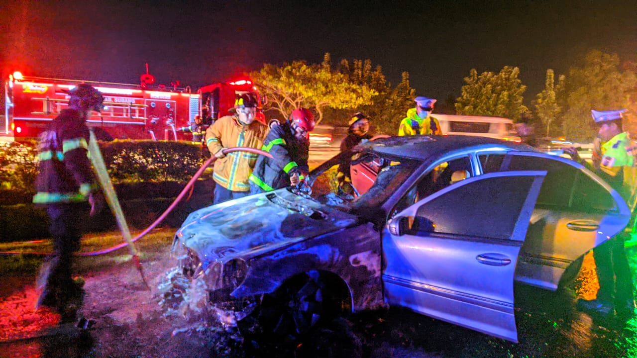 Peristiwa yang terakhir terjadi sekira pukul 23.45 Wib sempat mengakibatkan antrian panjang karena ada sebuah kendaraan Mercedes Benz Nopol B 2117 TQ terbakar.