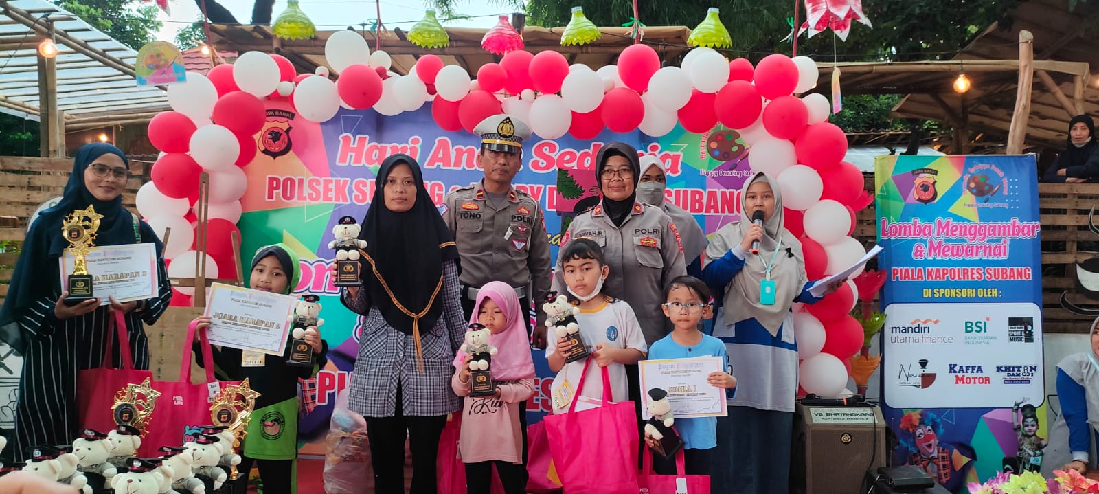Perlombaan menggambar dalam memperingati hari Anak Sedunia oleh jajaran polsek Subang dinilai berhasil dan sukses. Lomba hasil kerjabareng dengan Sanggar Happy Drawing ini memperebutkan Piala Kapolres Subang, di Cafe Trotoar Depan Mako Polsek Subang kota, Sabtu (26/11/2022).